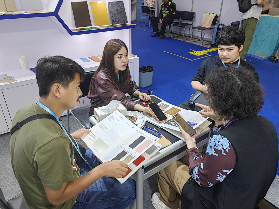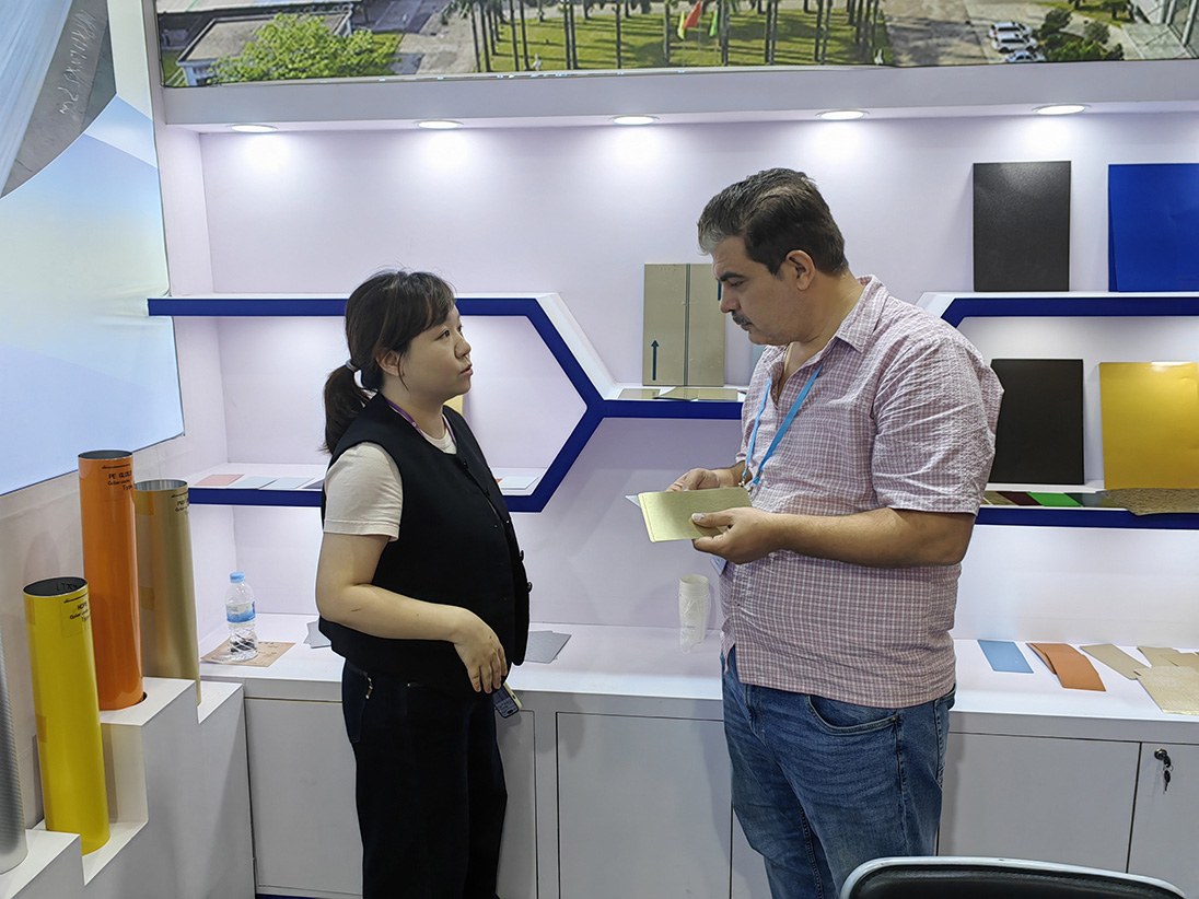 展会5天里,力同展位始终客流涌动。既有来自东南亚、中东市场的老客户专访到访,围绕新季度订单与定制需求深入洽谈,也有欧美市场的新采购商的主动咨询,对功能型铝卷产品表现出浓厚兴趣。