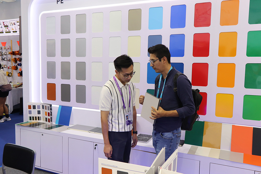 展会现场,力同铝业的展位前人头攒动,来自欧美、东南亚等全球各地的采购商驻足观摩、驻足洽谈,力同铝业的专业销售团队现场为客商提供产品讲解、技术答疑及定制化选材建议,细致解读产品的性能优势、应用场景与核心竞争力,高效输出从选材到应用的一站式解决方案,现场洽谈氛围热烈,不少客商当场表达了合作意向。